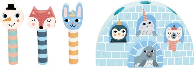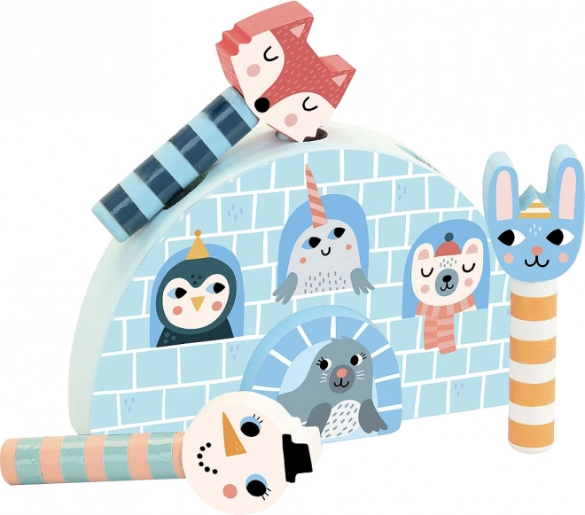 Vă prezentăm un joc de lansare din lemn cu animăluțe fermecătoare din Islanda. Copiii se vor distra cu trei personaje – o vulpiță, un iepuraș și un om de zăpadă – care sar dintr-un iglu. Jocul nu este doar distractiv, ci sprijină și dezvoltarea motricității fine și a creativității copiilor.