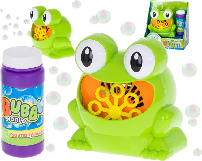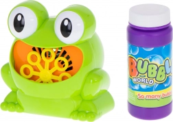 După turnarea soluției și apăsarea butonului, broscuța pornește imediat un flux de balonașe colorate – ideal pentru joaca zilnică și pentru petreceri.