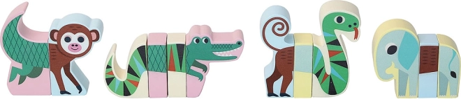 Puzzle-ul magnetic din lemn cu animale Jungle de la Vilac este jucăria ideală pentru copii de la 2 ani. Acest set constă din 12 piese pe care copiii le pot combina și crea forme diferite de animale: