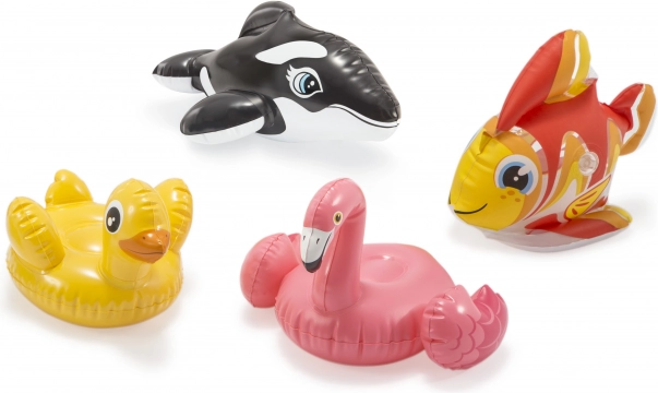 Alegeți dintre formele emblematice – flamingo roz, rățușcă galbenă, orcă/balenă jucăușă sau pește colorat. Fiecare motiv stimulează imaginația copiilor și îi invită la joacă în apă.