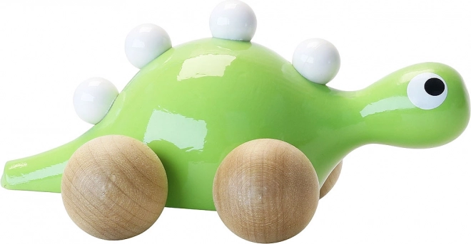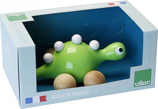 Bucurați-vă de distracție cu dinozaurul din lemn pe roți de la Vilac. Acest drăguț dinozaur este vopsit în verde și decorat cu proeminențe albe pe spate. Datorită roților din lemn, micul dvs. explorator poate deplasa cu ușurință dinozaurul prin casă sau afară.