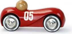 Mașina de curse roșie, stilată, din lemn lăcuit, cu roți metalice cauciucate, îi va încânta atât pe micii piloți, cât și pe iubitorii de design. Este potrivită pentru joacă și ca element decorativ. Fabricat în Franța, se remarcă prin execuție de calitate, roți rezistente și design vintage atemporal.