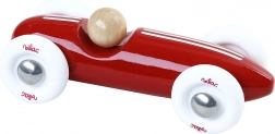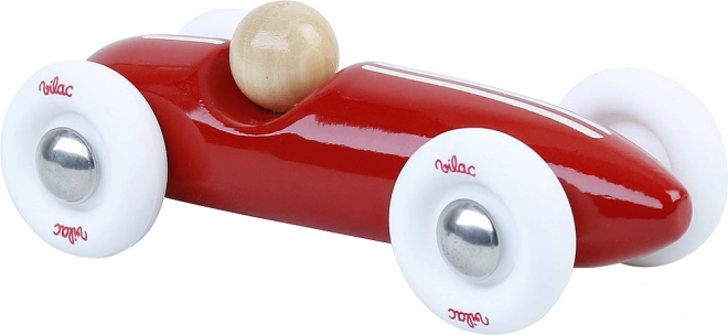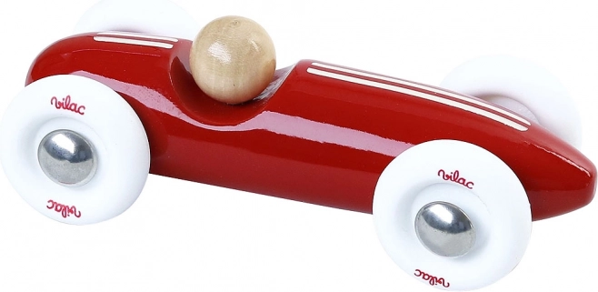 Mașinuța de curse mini roșie, stilată, din lemn lăcuit de înaltă calitate de la VILAC îi încântă pe micii și marii fani ai vitezei. Are roți albe din cauciuc, silențioase pentru o rulare lină, măiestrie franceză precisă și un design vintage atemporal, care susține jocul creativ și decorează frumos camera copiilor.