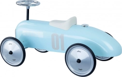 Descoperiți farmecul mașinilor de curse clasice în variantă pentru copii. Această mașinuță de împins metalică, albastru deschis, inspirată de vehiculele de epocă, îmbină designul atemporal cu funcționarea sigură și confortabilă. Roțile cu strat de cauciuc asigură rulare silențioasă chiar și pe suprafețe dure, iar volanul controlează virarea roților din față pentru o manevrare naturală.