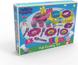 Set de veselă din plastic cu motivul Purcelușa Peppa le oferă copiilor o joacă distractivă de-a gătitul. În pachet găsiți 35 de piese, inclusiv plită, oale, farfurii, cănuțe și tacâmuri. Design ușor, rezistent și ușor de curățat.