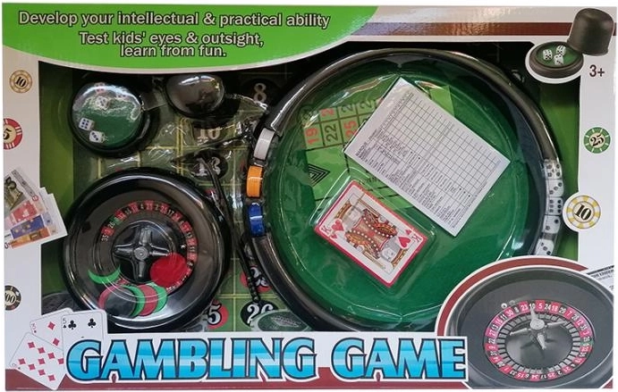 Un set „de noroc” unic, cu ajutorul căruia poți juca precum în cazinourile din lume, unde se învârt sume mari de bani. Pachetul include o ruletă cu jetoane, cărți, zaruri și altele. Potrivit pentru copii de la 8 ani.