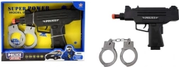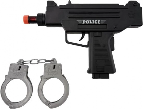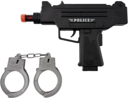 Set distractiv de echipament de poliție pentru copii, care include o pistolă de poliție și cătușe. Ideal pentru jocuri de-a polițistul, dezvoltarea imaginației și role-play atât acasă, cât și în aer liber.
