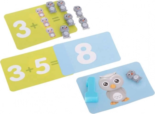 Conține 19 bufnițe, 10 cifre și 30 de carduri cu sarcini, care inspiră diverse jocuri și îi ghidează ușor pe copii către rezolvarea independentă a exercițiilor.