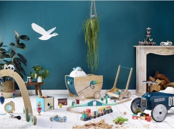Fabricat din lemn natural de înaltă calitate, cu accente colorate.