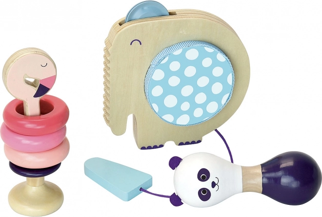 Acest set muzical din lemn de la Vilac este ideal pentru micii copii care doresc să se scufunde în lumea muzicii. Datorită realizării din lemn, setul nu este doar frumos, ci și durabil. Ajută la dezvoltarea simțului ritmic și susține abilitățile manuale prin joc.