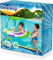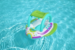 Datorită construcției stabile din PVC rezistent și mânerelor comode, copiii se pot plimba în siguranță în apă mică, sub supravegherea unui adult. Volanul cu claxon adaugă distracție interactivă și dezvoltă motricitatea. Grafica „spațială” colorată atrage atenția și stimulează imaginația în joaca pe apă.
