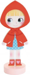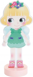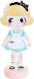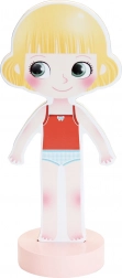 - 1 figurină din lemn pe suport, 36 de piese magnetice de îmbrăcăminte și accesorii
