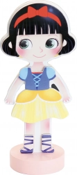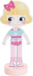 Îmbracă-o pe Mia în diverse ținute și lasă imaginația să înflorească! Această păpușă magnetică din lemn, înaltă de 22 cm, oferă până la 36 de piese de îmbrăcăminte și accesorii, care se atașează ușor datorită magneților. Jocul sprijină motricitatea fină, creativitatea și jocul de rol – un cadou ideal pentru copiii de la 3 ani în sus.