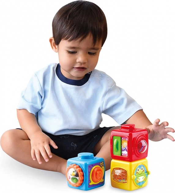 Cuburile noastre interactive sunt ideale pentru copiii care încep să descopere lumea din jurul lor. Sunt fabricate din materiale plastice sigure, care asigură durabilitate și o lungă durată de viață a jucăriilor. Fiecare dintre cuburi oferă elemente interactive unice, care stimulează simțul tactil și vizual.