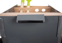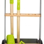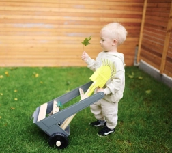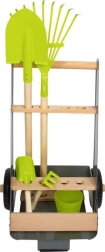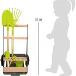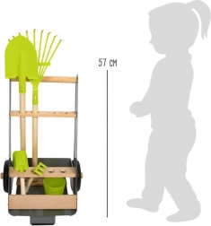 Acest cărucior de grădină permite tinerilor grădinari să lucreze la grădina lor de vis. Căruciorul stabil din lemn de fag și metal poate fi ușor împins sau tras prin grădină, deoarece este echipat cu roți rezistente. Include 5 piese de unelte pentru o grădinărit sigură și distractivă.