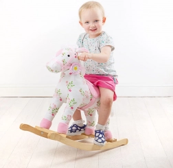 Datorită șeii moi din pluș și structurii stabile din lemn, joaca pe acest cal de legănat este confortabilă și sigură.