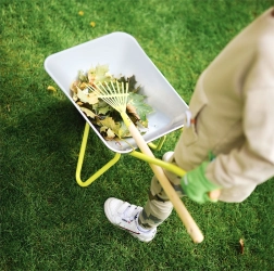 Kitul include lopată, greblă și mănuși de bumbac, fiind pachetul ideal pentru micii ajutoare în grădină.