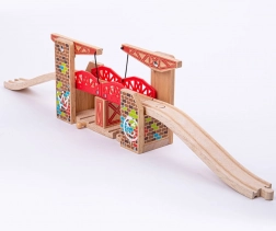 Podul dublu basculant Bigjigs Rail este un accesoriu uimitor pentru orice lume a trenurilor din lemn. Ambele părți ale podului pot fi ridicate, permițând trecerea lină a trenurilor, sau pot fi coborâte pentru a traversa vârful podului.