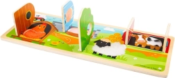 Puzzle-ul senzorial cu motiv de fermă aduce copiilor o lume bogată de forme, culori și texturi. Ușițele care se deschid și elementele tactile invită la explorare, adresarea de întrebări și povestire. Copiii își exersează prin joc recunoașterea animalelor, percepția vizuală și abilitățile tactile.
