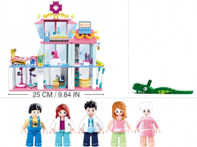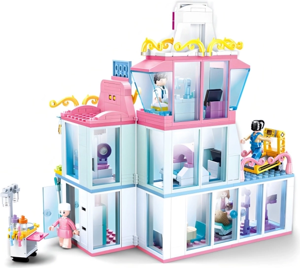 Descoperiți frumusețea și posibilitățile pe care le aduce setul de construcție Sluban Girls Dream Spitalul. Acest set include 458 de piese și 5 figurine detaliate pe care copiii le pot personaliza datorită componentelor rotative și balansante.
