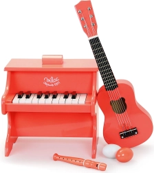 Această chitară din lemn VILAC, în portocaliu intens, este jucăria ideală pentru micii muzicieni. Datorită corzilor din nylon, este plăcută la cântat și blândă cu degetele copiilor. Dimensiunile compacte se potrivesc bine în mâinile celor mici și stimulează jocul creativ.