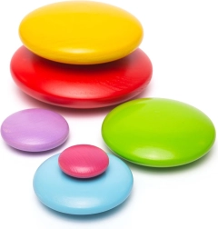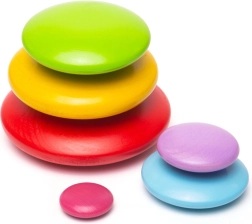 Descoperă farmecul jocului liber cu un set de pietricele din lemn netede, pe care copiii le pot construi, aranja și echilibra la nesfârșit. Culorile vii, vopselele sigure și netoxice și lemnul de calitate stimulează imaginația și dezvoltă motricitatea fină și percepția spațială.