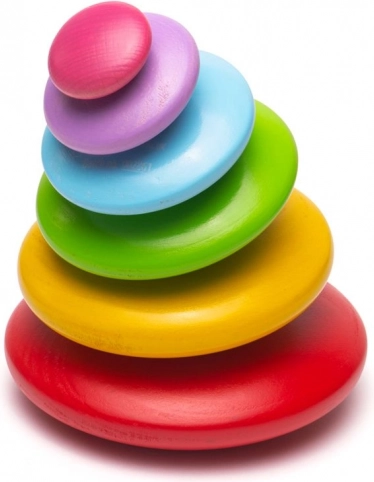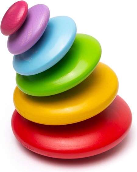 Pietricelele sunt realizate din lemn rezistent și colorate cu vopsele netoxice. Datorită suprafeței netede, se țin plăcut în mână și sunt ideale pentru mâini mici de la 18 luni. După joacă, pot servi și ca o decorațiune veselă pentru camera copilului.