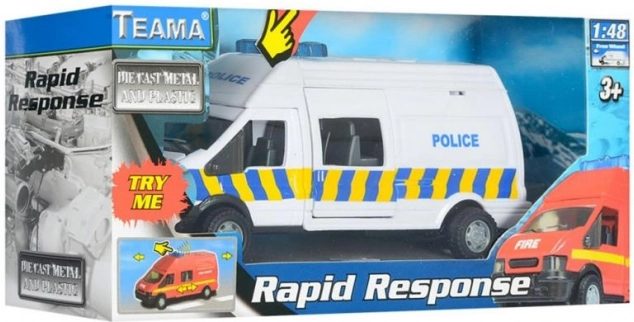 Mașinuță Rapid metalică cu sunet este jucăria ideală pentru toți micii iubitori de mașini. În scara 1:48 aduce autenticitate și distracție, pe care copiii o adoră.
