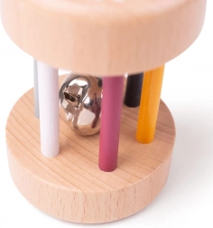 Copiii pot agita și zdruncina această zornă, dar o pot și rostogoli pe suprafață. Datorită stâlpilor colorați în 6 nuanțe diferite și a clopoțelului lucios din mijloc, zorna ajută la dezvoltarea coordonării mână-ochi. Este durabilă și ușoară, asigurând o prindere confortabilă.