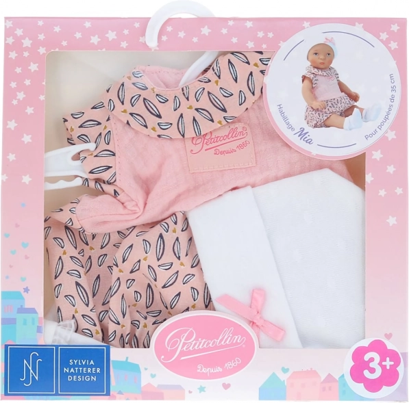 Hăinuțe Mia pentru păpuși de la Petitcollin aduc eleganța franceză și modele unice. Acest set este ideal pentru păpușile cu înălțimea de 35 cm și include un salopetă, o căciuliță și șosete.