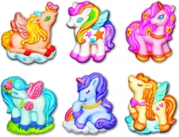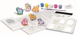 În acest set creativ, puteți forma și picta turnături din ghips. Produsul conține tot ce este necesar pentru a crea magneți sau broșe în formă de unicorni.