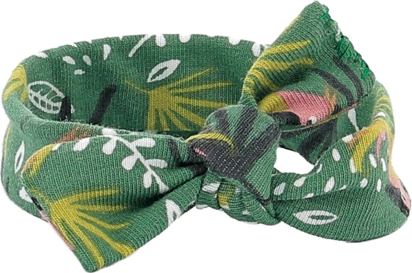 Bentița textilă cu imprimeu tropical și nod își păstrează forma și se asortează minunat cu celelalte piese.