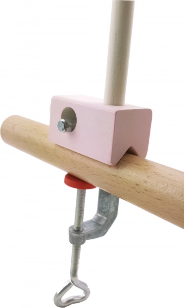 Suport stilat și funcțional pentru carusel/mobil deasupra pătuțului, care se montează ușor cu ajutorul unei cleme metalice robuste. Datorită intervalului universal de prindere, este compatibil cu majoritatea pătuțurilor și pieselor de mobilier pentru copii. Lemnul natural combinat cu elementul roz se potrivește atât camerelor moderne, cât și celor clasice.