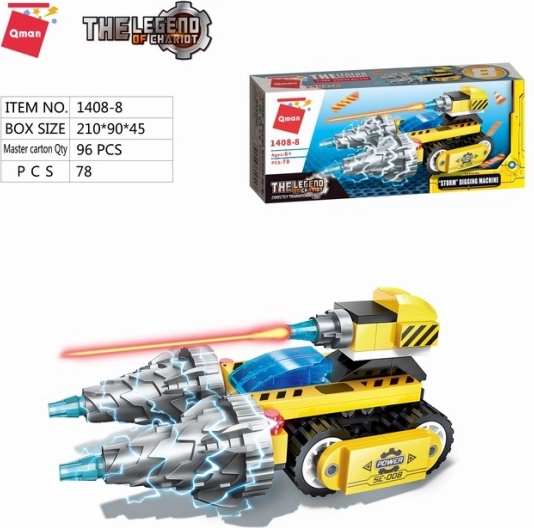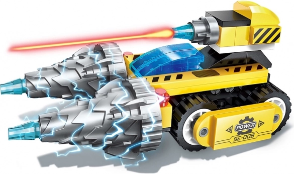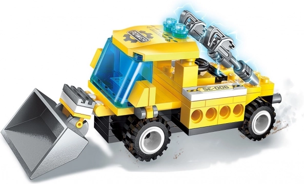 - 8 mini-seturi: Camion Spanker, Macara Hercules, Compactor Thunder, Excavator Talon, Elicopter Dragon, Buldozer Blade, Robot Ninja, Mașină de săpat Storm