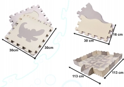 Covorașul pentru copii din spumă, format din piese puzzle cu forme detașabile, creează un spațiu sigur și creativ pentru joacă. Datorită marginilor ridicate, poți asambla un țarc care păstrează jucăriile în interior. Covorașul este rezistent la apă, are suprafață antiderapantă și amortizează loviturile, fiind ideal pentru primii pași. Culorile neutre gri și ecru se potrivesc în orice interior.