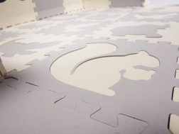 Piesele mari din spumă cu forme de animale detașabile susțin învățarea formelor, creativitatea și motricitatea fină. Din piese poți asambla ușor un covoraș plat sau un țarc cu margini ridicate, care delimitează o zonă sigură pentru joacă. Suprafața texturată este plăcută la atingere și nu alunecă.