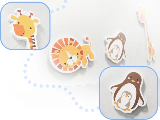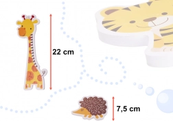 Motivale vesele precum girafă, tigru, maimuțică sau arici atrag copiii prin culorile vii și încurajează aranjarea creativă și povestirea.