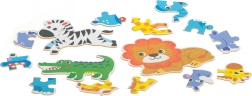 Acest puzzle creativ cu animale precum girafă, leu, zebră și crocodil dezvoltă imaginația copiilor și susține concentrarea. Datorită ilustrațiilor colorate și pieselor mai mari, copiii învață gândirea logică, motricitatea fină și răbdarea.