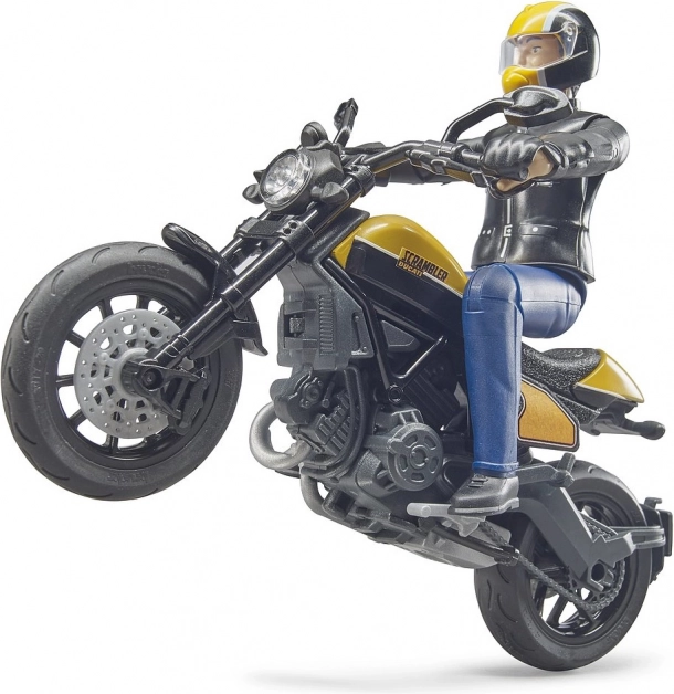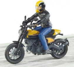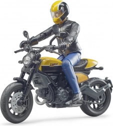 Acest model detaliat al motocicletei Scrambler DUCATI Cafe Racer de la BRUDER este ideal pentru micii pasionați de motoare și colecționari. Realismul execuției, de la elementele vizibile ale motorului până la forma șeii, este completat de figurina complet mobilă a motociclistului, care permite poziții naturale de mers și de acțiune.