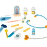 Setul medical conține toate instrumentele necesare pentru jocul de-a doctorul, cum ar fi stetoscopul, termometrul, seringa și altele.