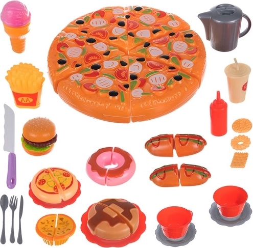 Setul de jucării fast-food este perfect pentru micii bucătari care vor să se joace de-a preparatul mâncărilor preferate. Copiii pot crea propriile combinații datorită celor 42 de elemente pe care le conține acest set. Culorile vivante și designul realist al fiecărui element contribuie la stimularea imaginației copiilor.