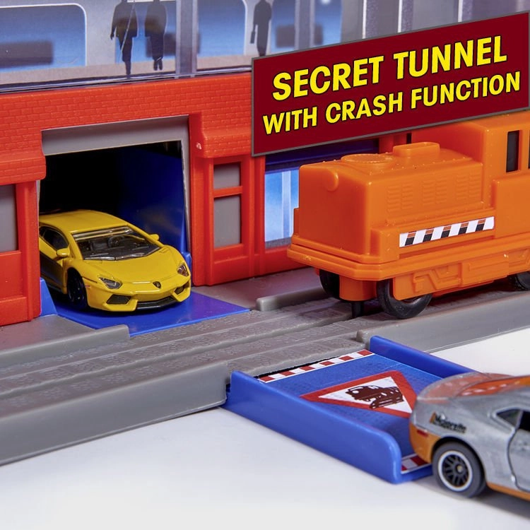 Stația de alimentare și stația feroviară au efecte luminoase și sonore, plus o locomotivă cu vagon pentru și mai multe scenarii de joacă.
