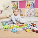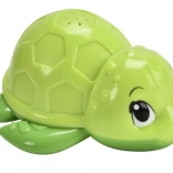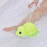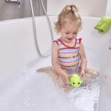Broscuța plutește la suprafață și stropește ușor cu apă – ideală pentru băi distractive și primele jocuri acvatice.