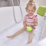 Datorită lungimii compacte de 11 cm, se ține ușor chiar și în mânuțele copiilor mici. Plasticul neted și rezistent se curăță ușor și este conceput pentru utilizare zilnică în cadă sau în piscina pentru copii.
