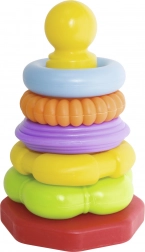 Piramida cu inele colorate este un ajutor ideal pentru dezvoltarea motricității și a capacității de combinare la copii. Include cinci inele colorate de forme diferite.