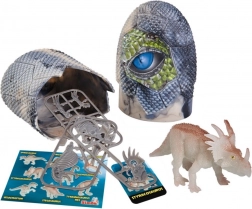 Această figurină de dinozaur în ou aduce bucuria descoperirii atât copiilor, cât și adulților. Fiecare ou ascunde o figurină detaliată de 10 cm, un mini-puzzle al scheletului dinozaurului și un card colecționabil stilat. Dinozaurul strălucește în întuneric, astfel încât încântă chiar și după stingerea luminilor.