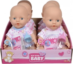 Prezentăm păpușa din colecția New Born Baby, care poate să bea din sticlă și să facă pipi, făcând-o un însoțitor de joacă unic pentru copii. Datorită dimensiunii sale realiste de 30 cm și variantelor variate de îmbrăcăminte, va oferi copiilor voștri nenumărate posibilități de joacă.