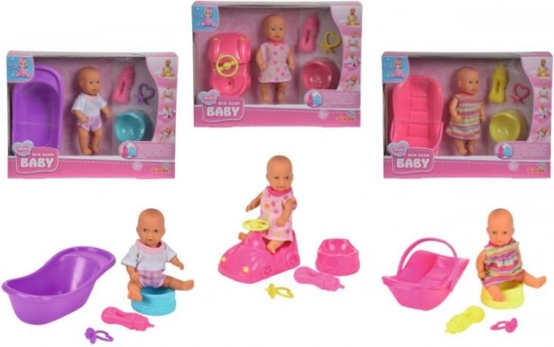 Păpușa MNB este partenerul ideal pentru copiii care doresc să îngrijească un bebeluș. Acest set include, printre altele, o cădiță, un scăunel, o masă de joacă și o mașinuță, oferind posibilități nesfârșite pentru jocuri distractive: