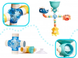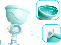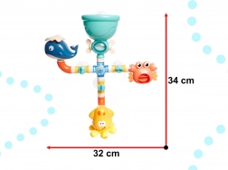 Instalarea durează doar o clipă: ventuzele puternice aderă atât pe cadă, cât și pe faianță, astfel încât jucăria rămâne stabilă. Valvele albastre le permit copiilor să regleze direcția și debitul apei, dezvoltând îndemânarea, gândirea logică și coordonarea mână–ochi.