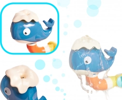 Balena, crabul și alte personaje transformă jetul de apă într-o mică cascadă. Copiii se distrează și învață natural principiile curgerii apei și ale reglajului.